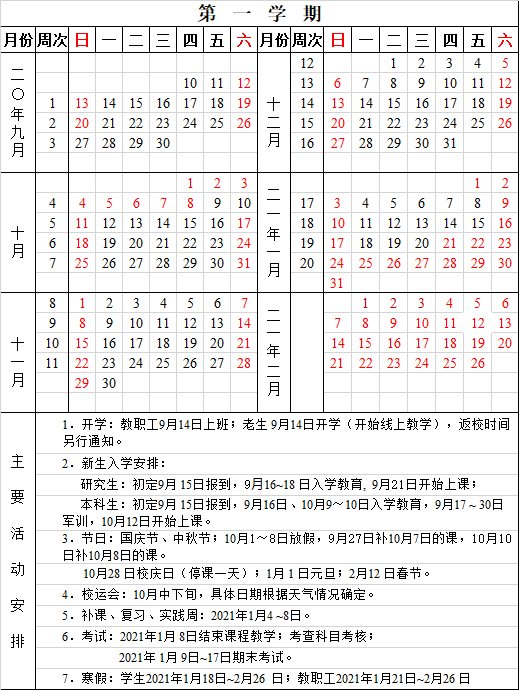 井冈山大学2020-2021学年度校历