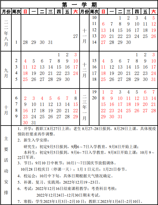 井冈山大学2022-2023学年度校历